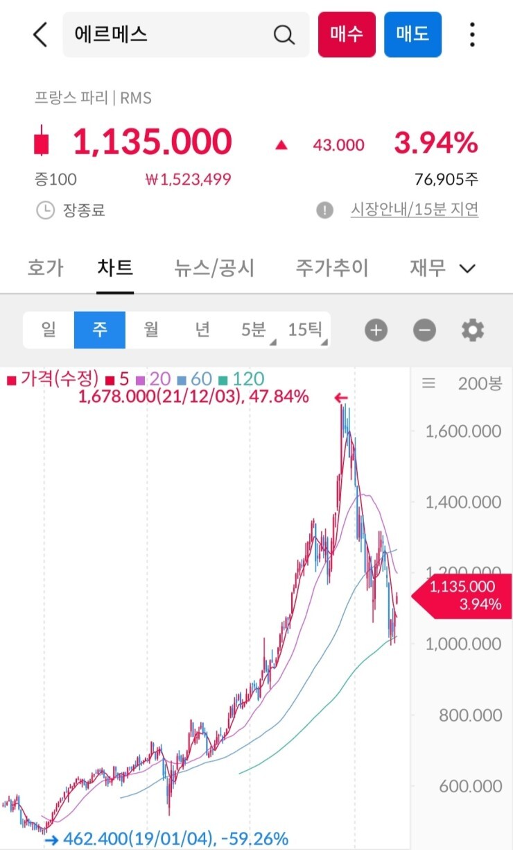 에르메스 주식은 현재 1주에 150만원정도 하네요.