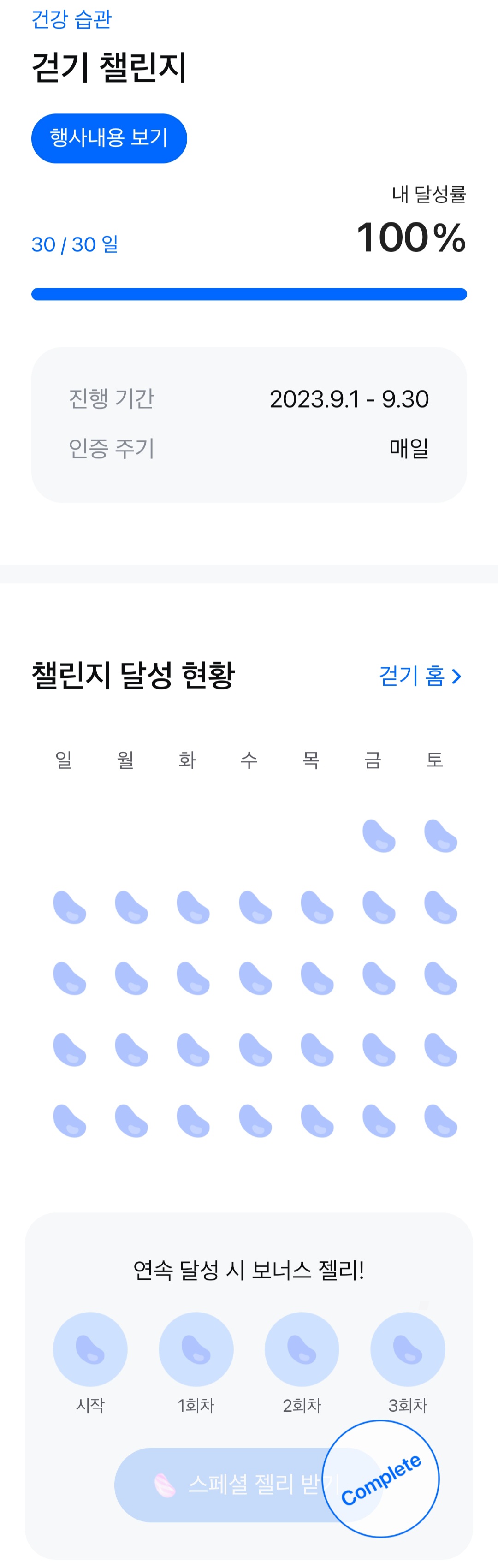 한 달 모두 성공하면 스페셜 젤리를 받을수 있습니다.