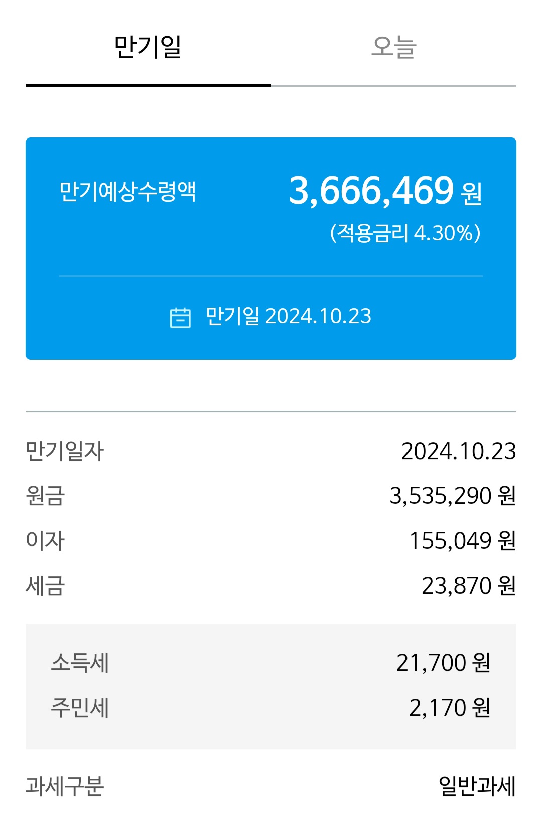사이다뱅크 정기예금 4.3% 만기일 예상수령액