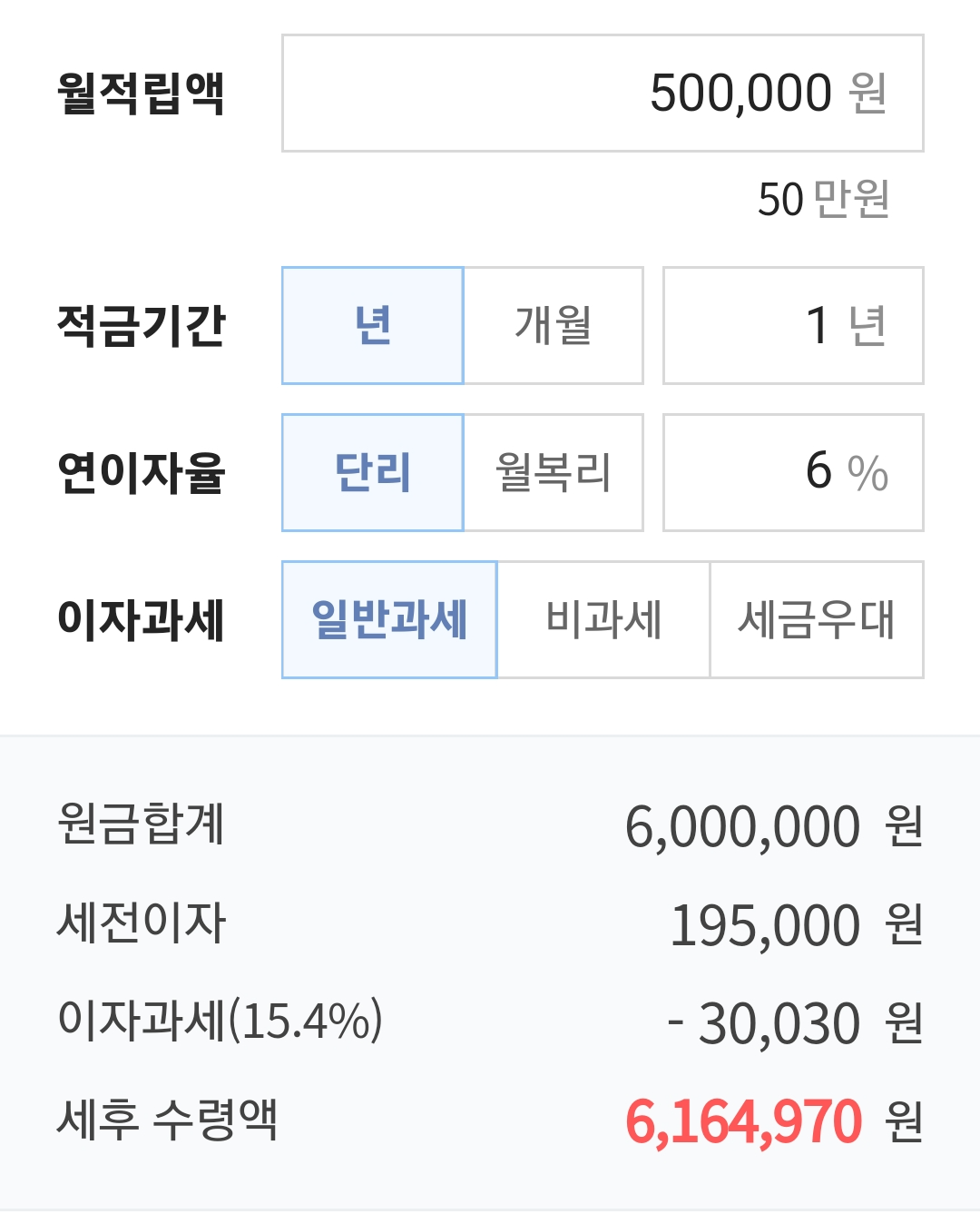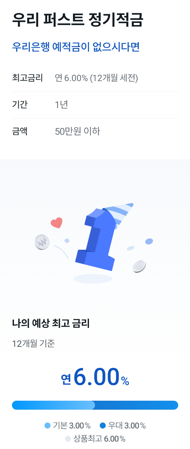 기본금리 : 3% + 우대금리 : 3% = 6%