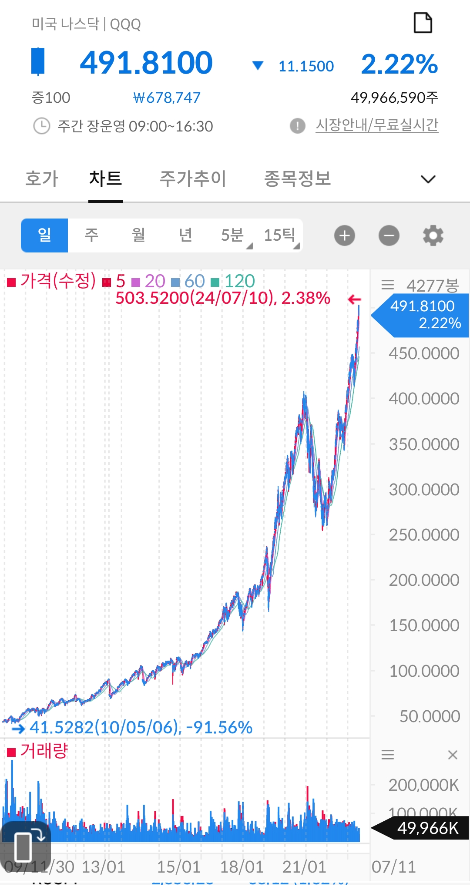 QQQ 24년 7월 12일 차트