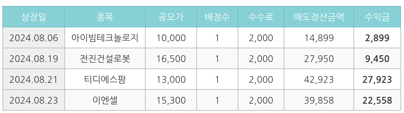 오늘은 8월에 청약한 공모주 수익 결산을 해 보았습니다.