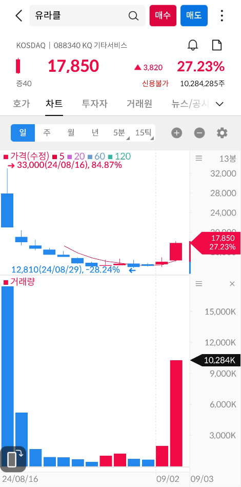 2024년 9월 3일 유라클 차트