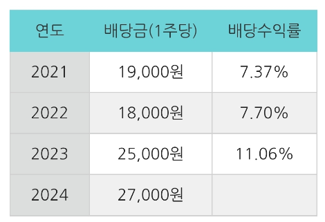 최근 몇 년간 배당금을 살펴보면 다음과 같습니다.