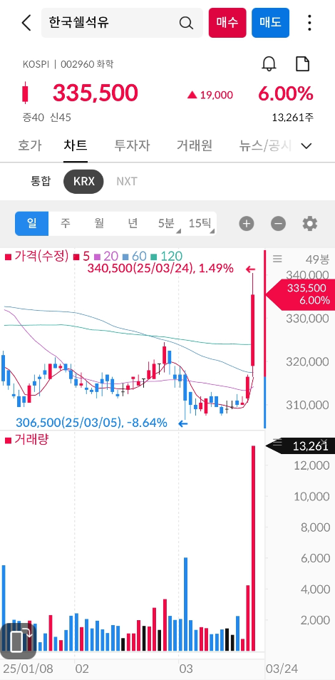 한국쉘석유 25.3.24 주가추이 ▶ 배당 매력이 높은 종목