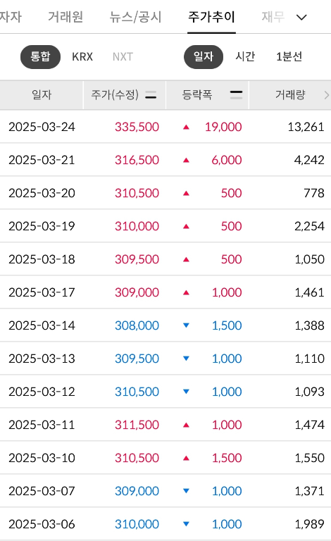 현재 주가는 332,000원(25.3.24일 종가 기준)으로 큰 변동 없이 꾸준한 배당을 지급하며 장기투자자들에게 사랑받고 있습니다.