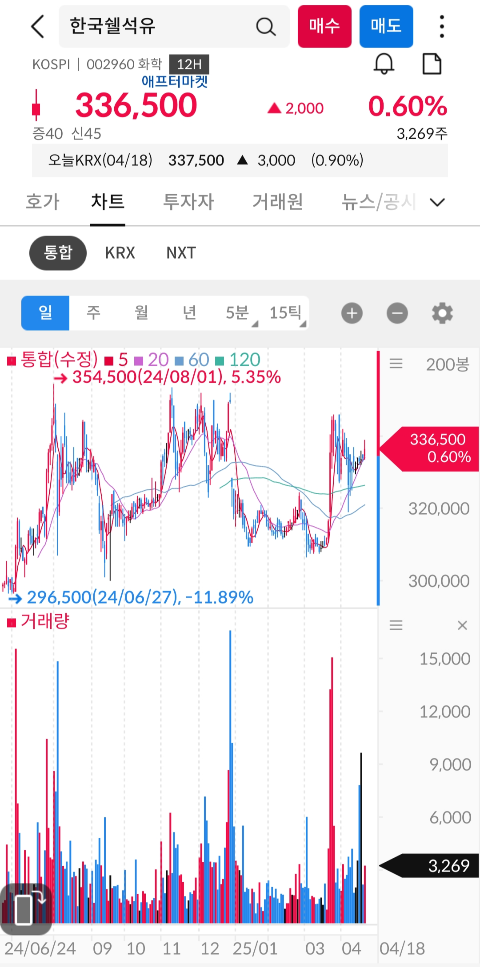 한국쉘석유 25년 4월 18일 기준 차트