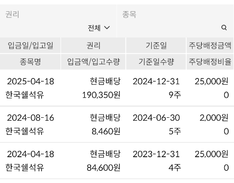 [배당주] 25년 4월 한국쉘석유 배당(주당 배당금 25,000원)재테크/한국주식 2025. 4. 19. 10:37반응형
