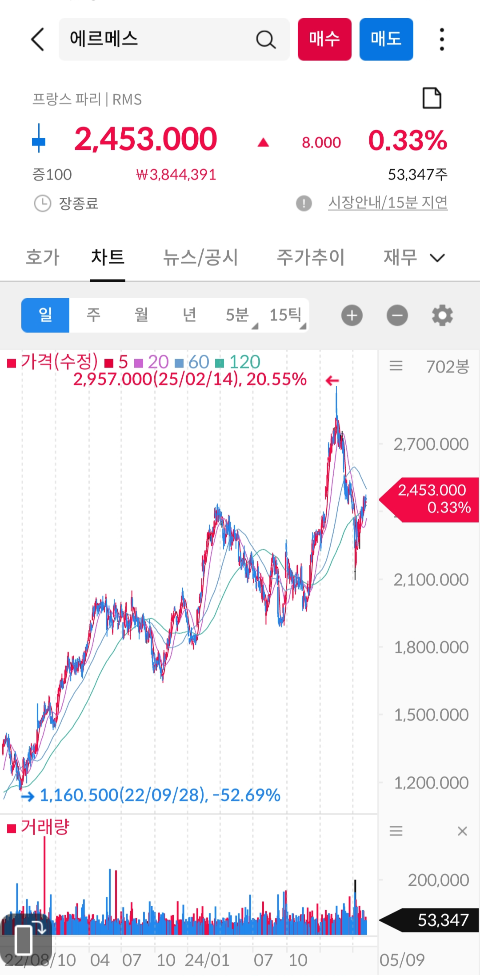 2025년 5월 9일 기준 에르메스 차트